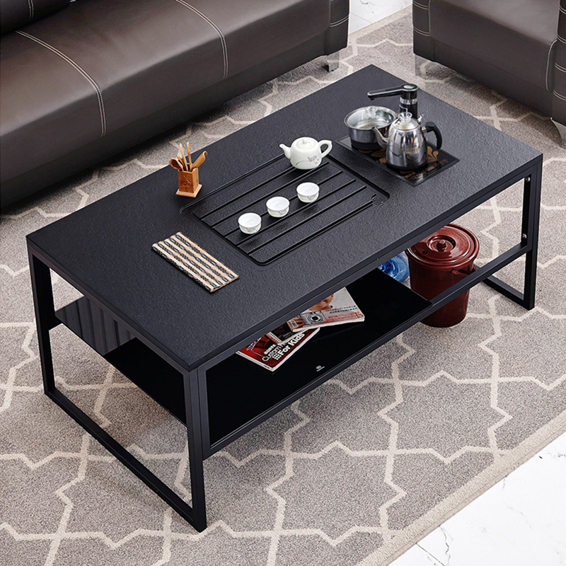 Suzhou-style burning stone kung fu tea table simple modern creative iron office tea table tempered glass marble coffee table