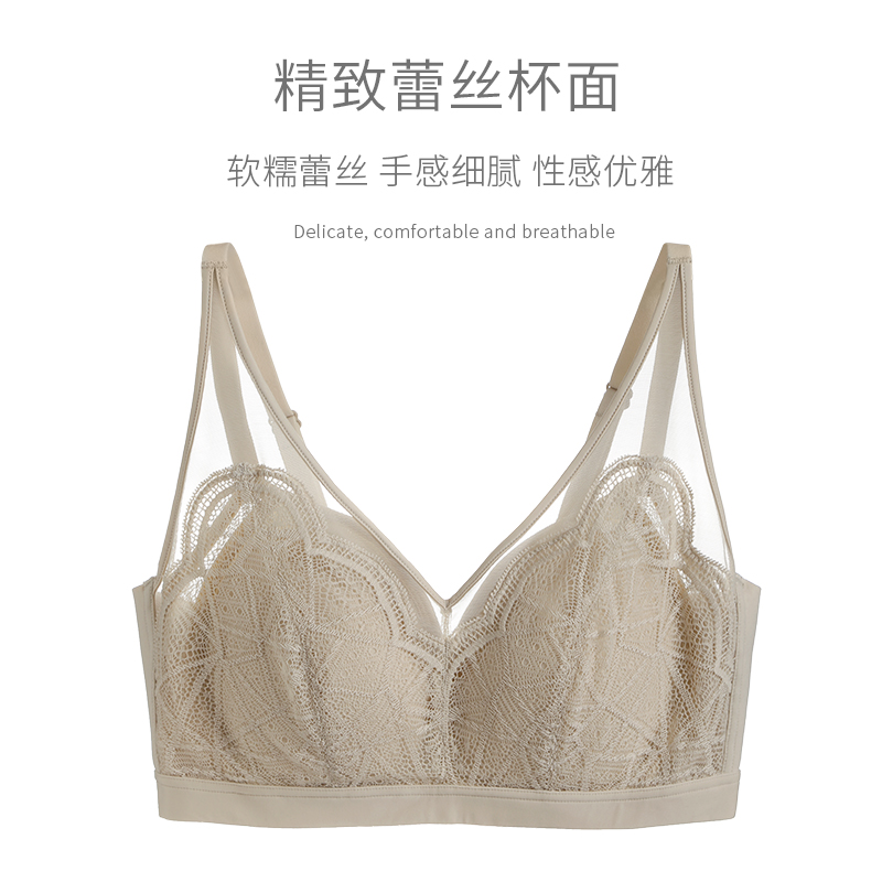 Lace small chest thickened new flat chest special bra breathable without steel ring burst large breast bra latex cotton