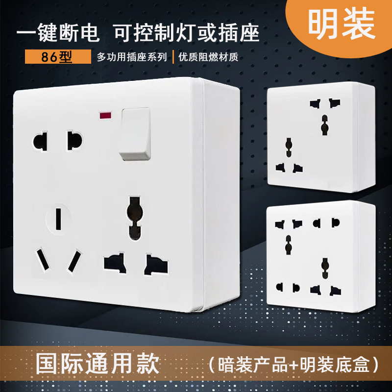 86 type wall with switch panel porous 16A household wall open eight hole socket 1 open 8 hole