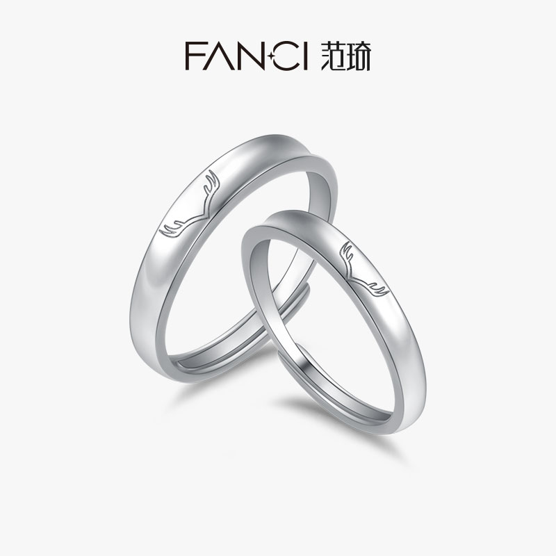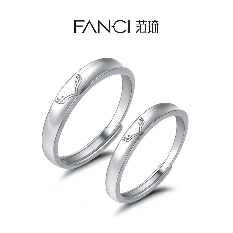 Fanci Fan Qi silver jewelry One deer has you couple ring couple ring sterling silver opening original design lettering