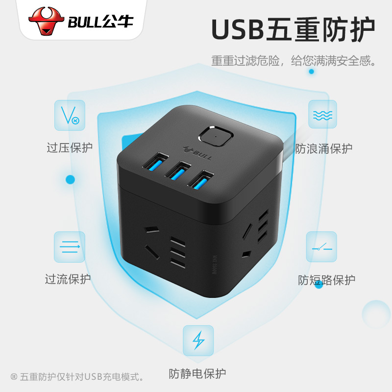 Bull Socket Magic Cube with type-c multifunction usb plug 20w charger converter panel platoon plug-board patch panel PD Quick charge switching power supply porous home Five-hole Official
