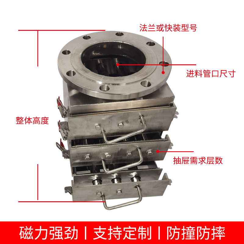 Iron remover drawer type pipeline dry powder filter stainless steel magnetic separation self-unloading magnetic stand strong magnetic iron absorber