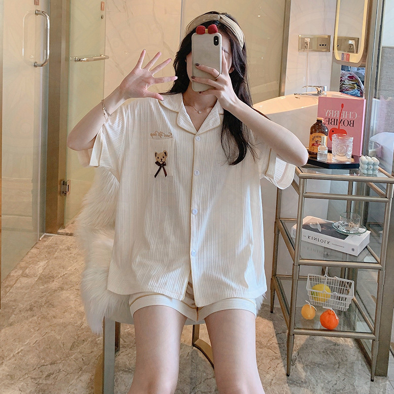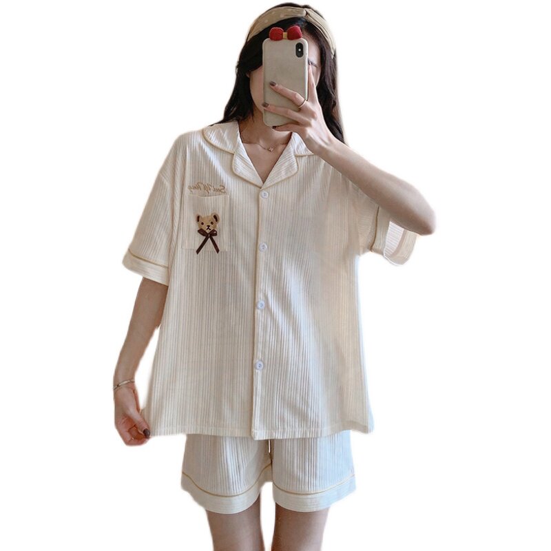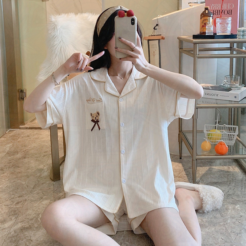 Cotton pajamas women's 2022 new summer large size thin short-sleeved Korean cardigan home clothes women's two-piece suit