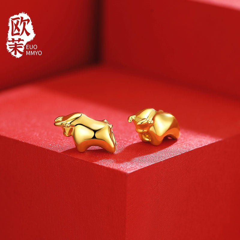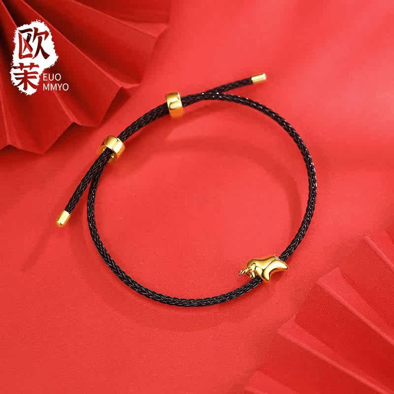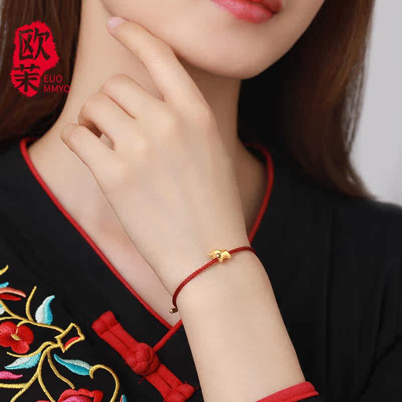 Gold Twelve Zodiac Ox Transit Beads 5D Hard Gold Bright Surface Mechanical Ox Bracelet String Birth Year Couple Red Rope Bracelet