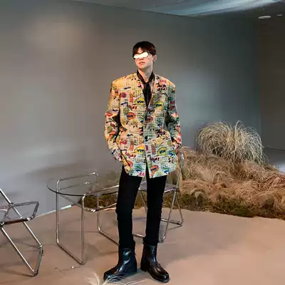 ESC MAN STUDIO homemade hard not to like check graffiti style casual blazer jacket