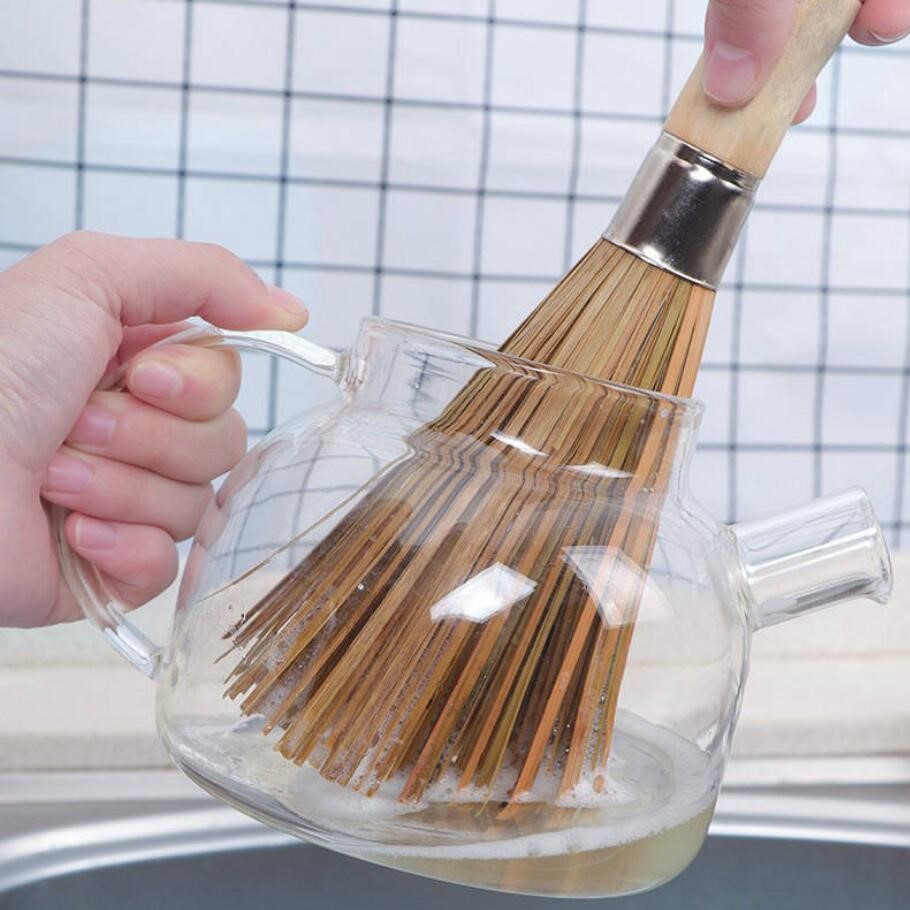 Bamboo Brush Pot Divine Pot Scrubbing Pot Cleaning Dishwashing Brush Kitchen Handmade Wooden Handle Bamboo Brush Handle