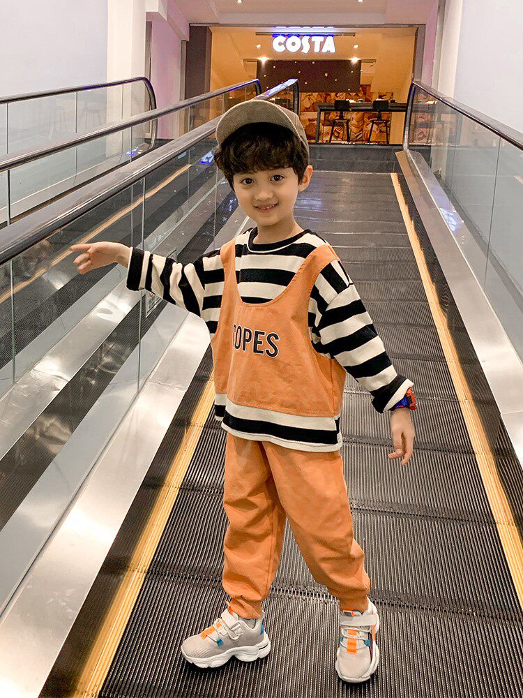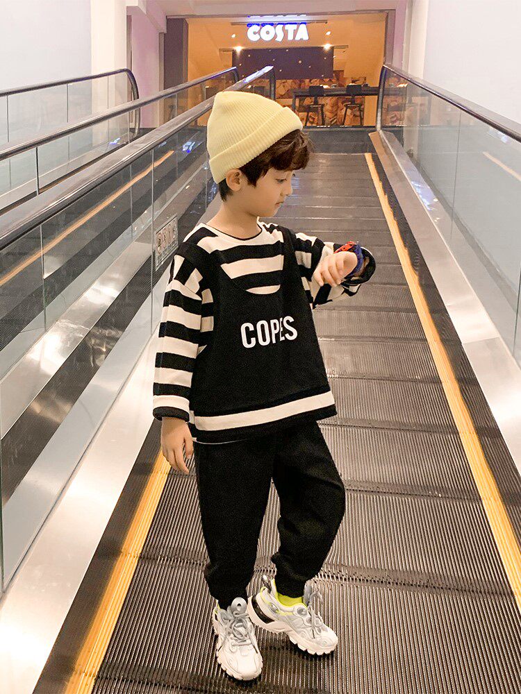 Korean boy's autumn suit 2022 new suit children's spring and autumn handsome boy striped sweater children's clothing trend - Taobao