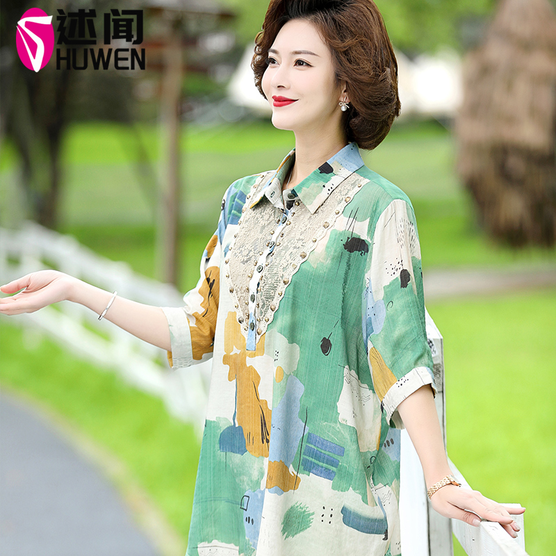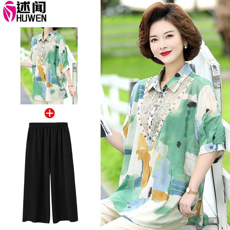 Mother Summer Clothing Cotton Linen Suit Foreign Pie Short Sleeve T-shirt Middle-aged Woman Loose Blouse 50 Year Old Summer Thin