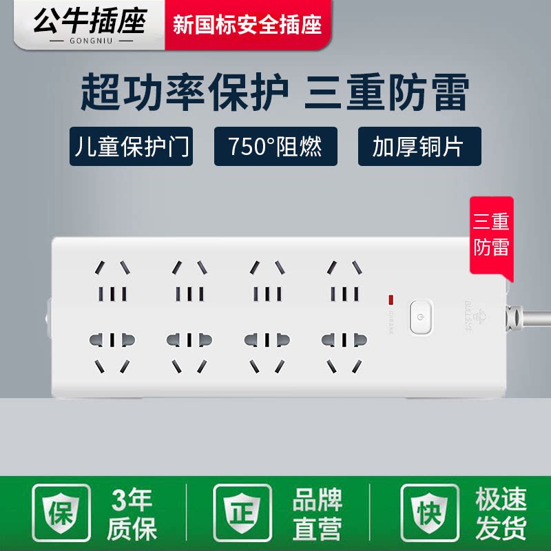 Bull socket GN-H2080 lightning protection board office extension line overload protection 3 meters 8-bit plug-in switch