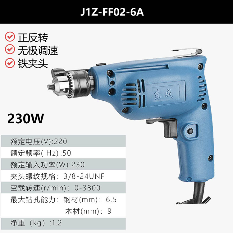 Dongcheng electric drill J1Z-FF02-6A electric drill forward and reverse adjustable speed power tool home improvement assistant hand-held