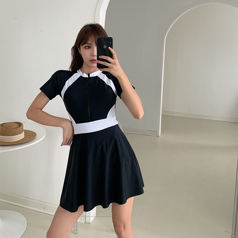 Peach Aborted South Korea Ins Swimsuit Women's Summer Conservative even body dress Slim 2021 New Short Sleeve Student Movement