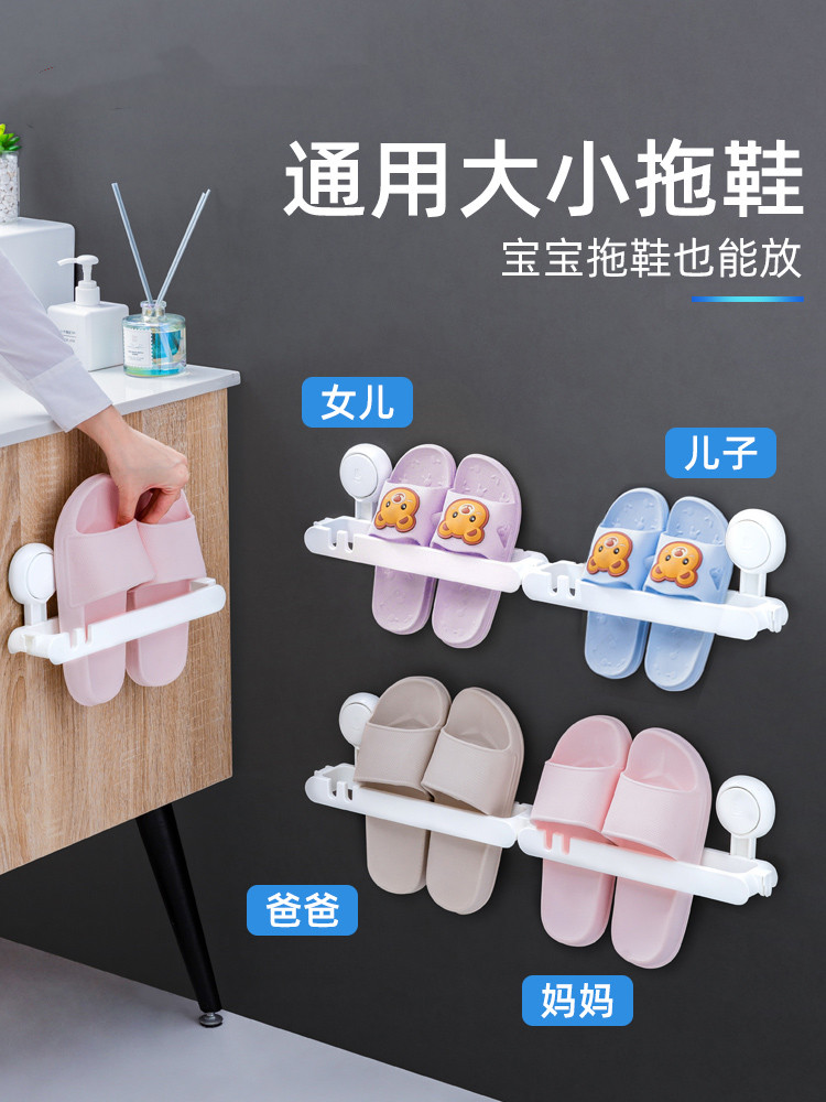 Home door shoe rack bathroom slippers rack free punch wall-mounted waterproof powder room storage drain suction cup rack