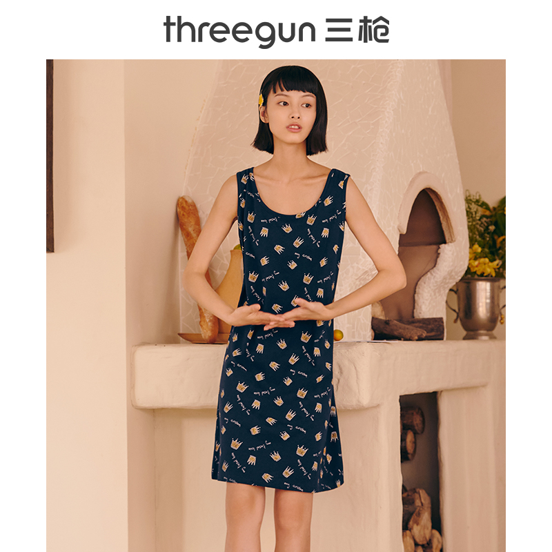 Triple Lance Lingerie Official Flagship Store Sleepwear Woman Vest 2022 Summer Xinjiang 100% Pure cotton thin section Home Sleeping Dress