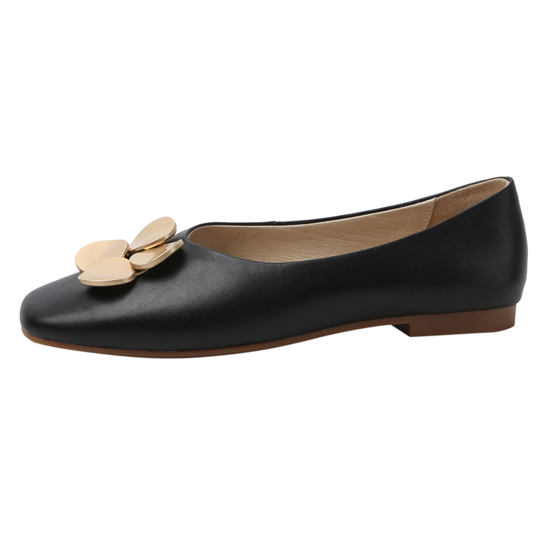 Korean version 100 hitch elegant ocean gas metal buckle soft leather small square head shallow mouth single shoe woman flat bottom casual all season ladyshoe
