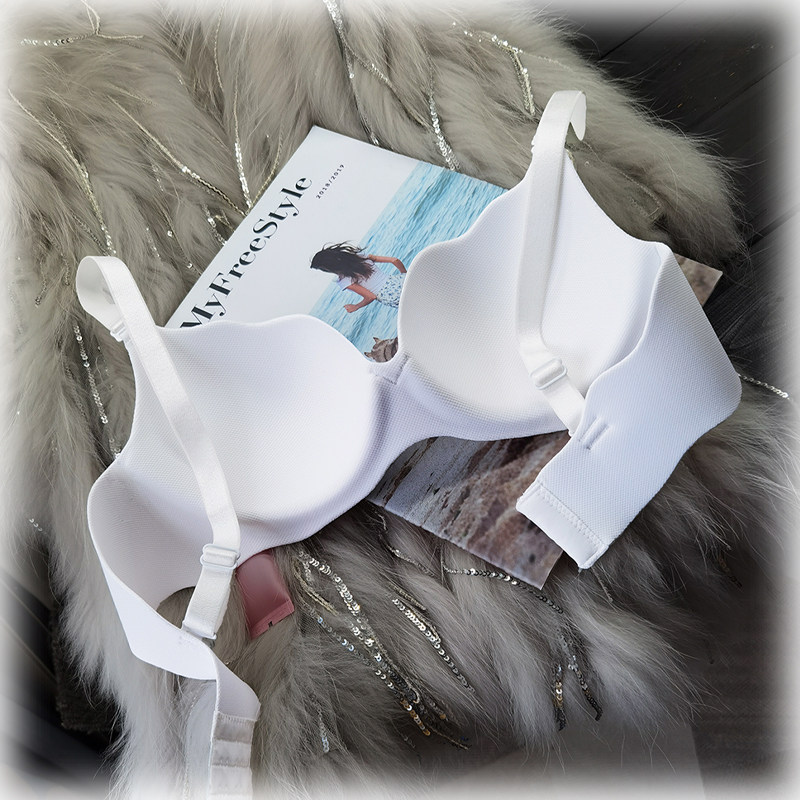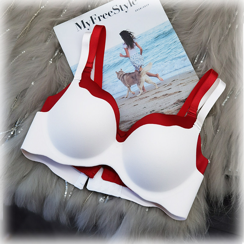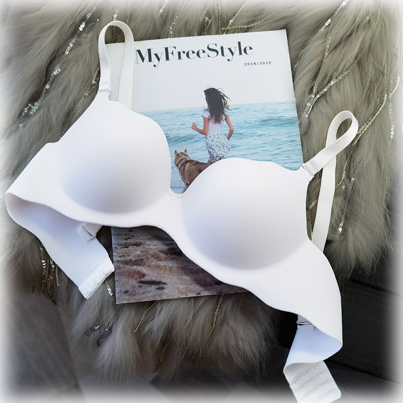 White No-scar lingerie Women's thin summer summer Sexy big breasted with small text bra One-piece without steel ring
