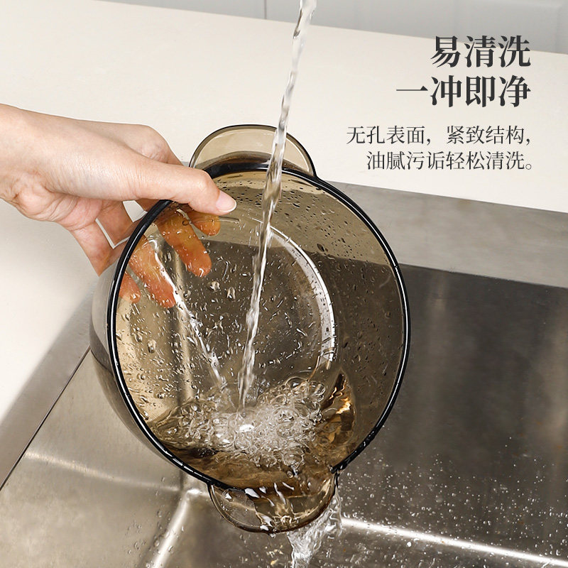 Tea Color Heat Resistant Glass Bowl Home Eating Bowl Transparent Fruit Salad Bowl High Temperature Resistant Microwave Special Double Ear Bowl