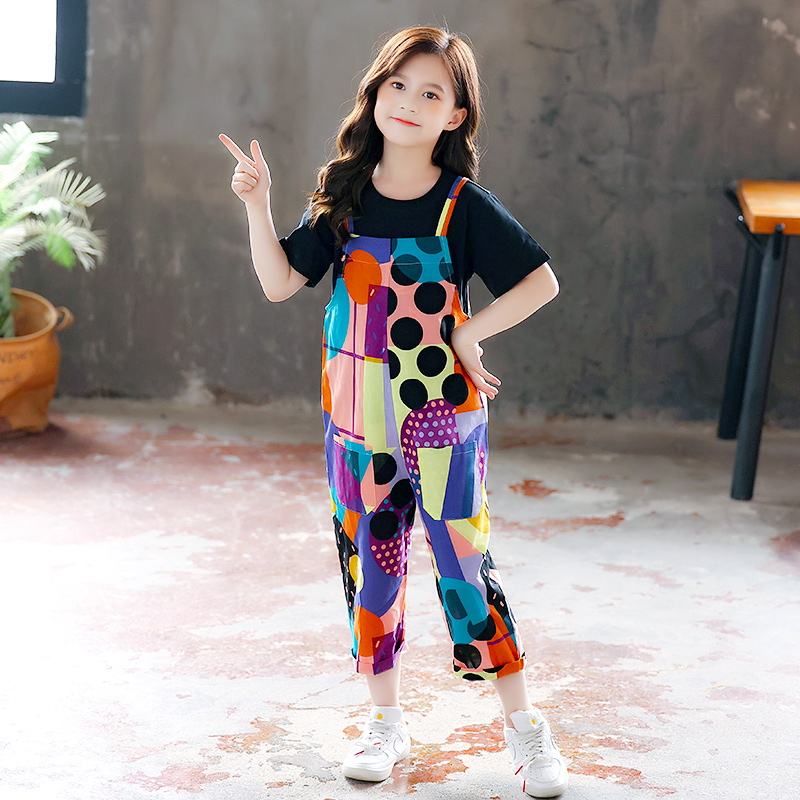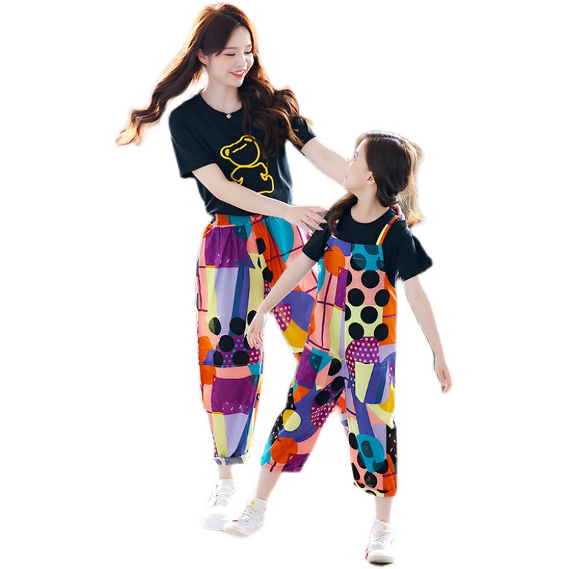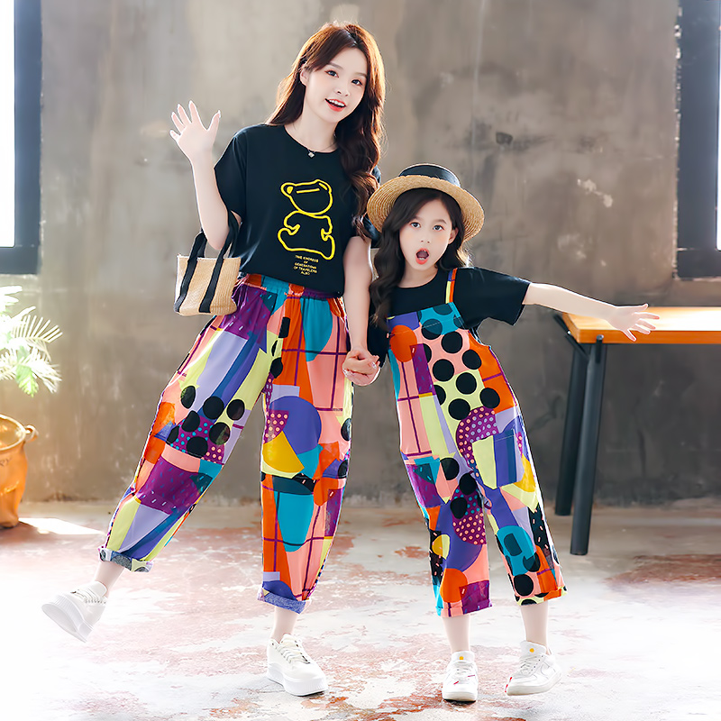 Fried Street parent-child dress summer suit girl Summer thin short sleeve foreign mother women's casual two-piece suspenders