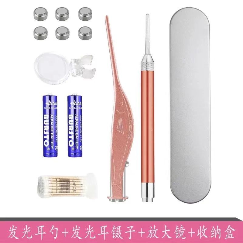 Baby with lamp ear scoop luminous ear scoop ear scoop ear tweezers tool buckle ear artifact ear excrement cleaner tool set