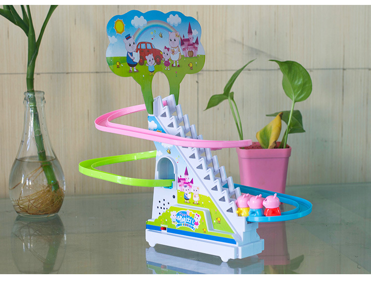 Children's electric climbing stairs track small pig climbing stairs with light music Pig Pig Climbing Stairs Toy Presents