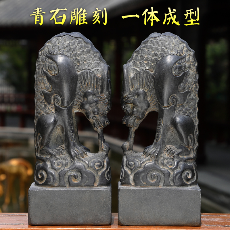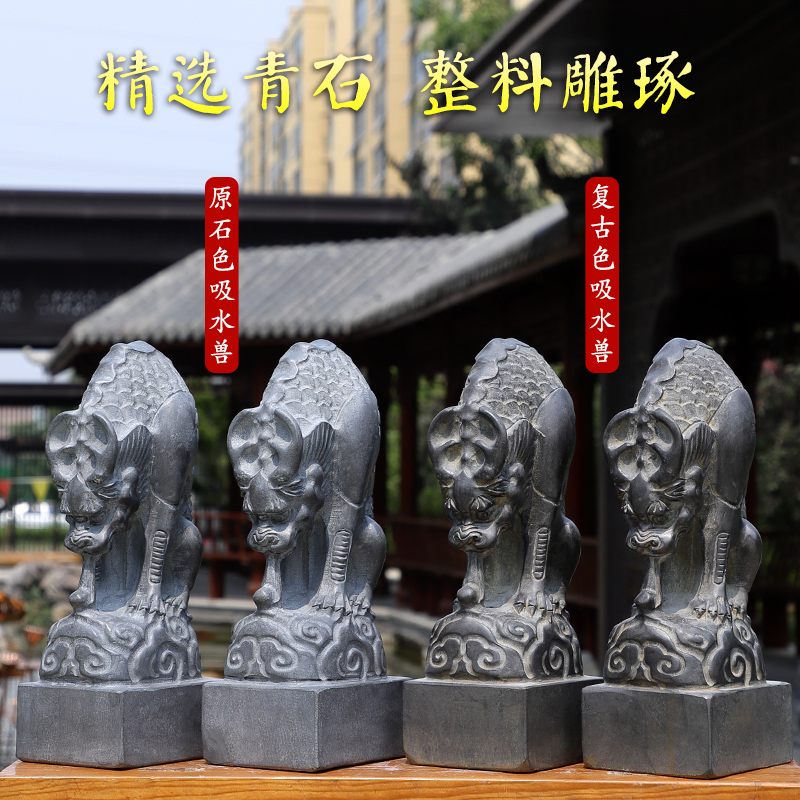 Stone Carving Green Stone Stones Water Absorbing Beast Imitation Ancient Courtyard Town Residence Villa Doorway Doormound Door Mound Carving Avoiding the Aquatic Beast swaying pieces