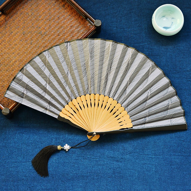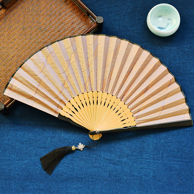 Chinese style ancient style folding fan men and women portable summer solid color texture Japanese Hanfu cheongsam catwalk portable dance