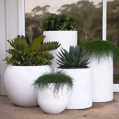 Custom glass fiber outdoor green plant landscape round big flower bowl shopping mall flower Ware square flower pool cylindrical flower pot