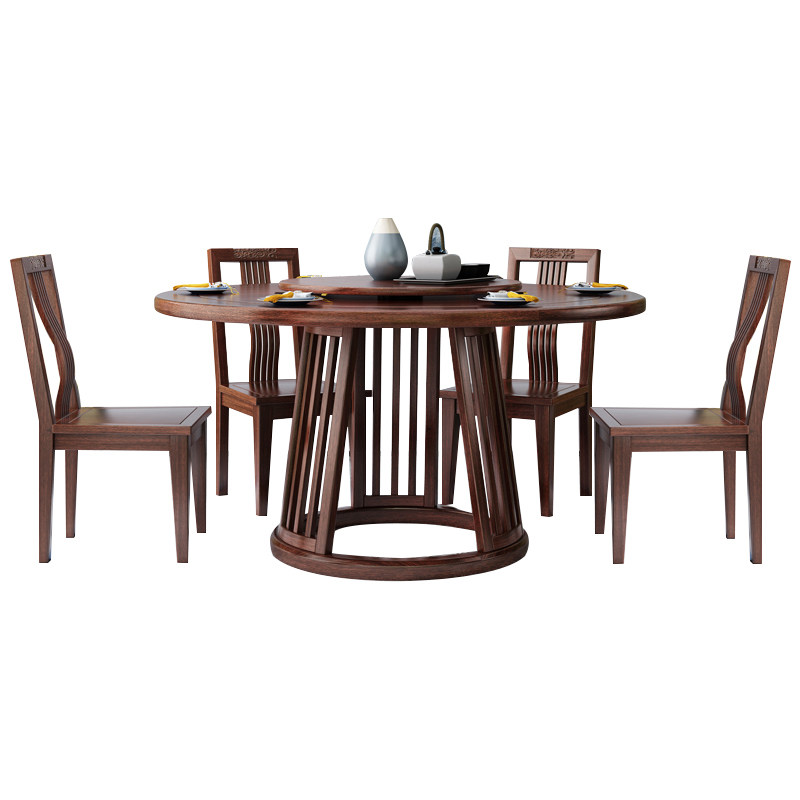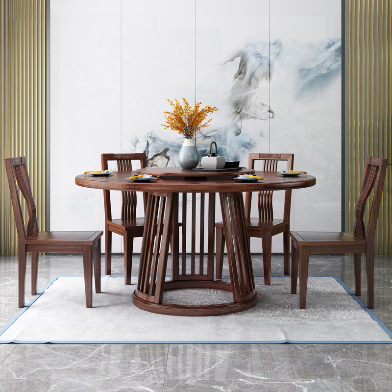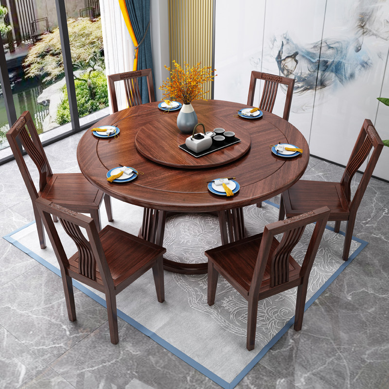 Wujinmu new Chinese-style solid wood dining table and chair combination one table six chairs round table dining table light luxury one dining table luxury type