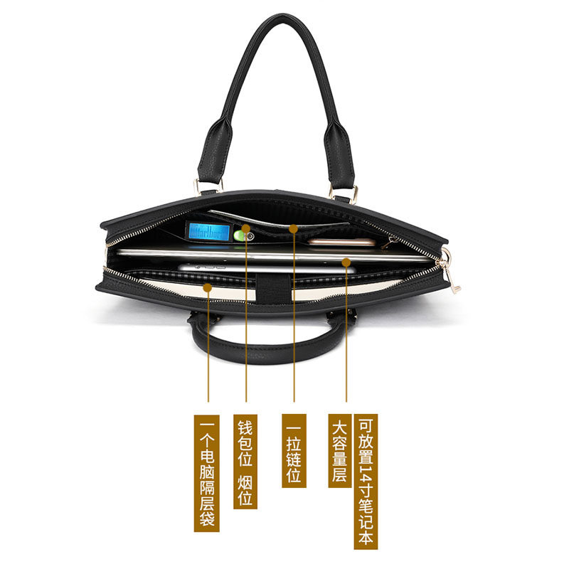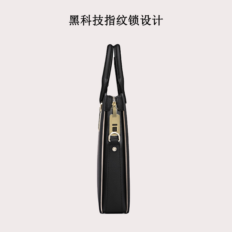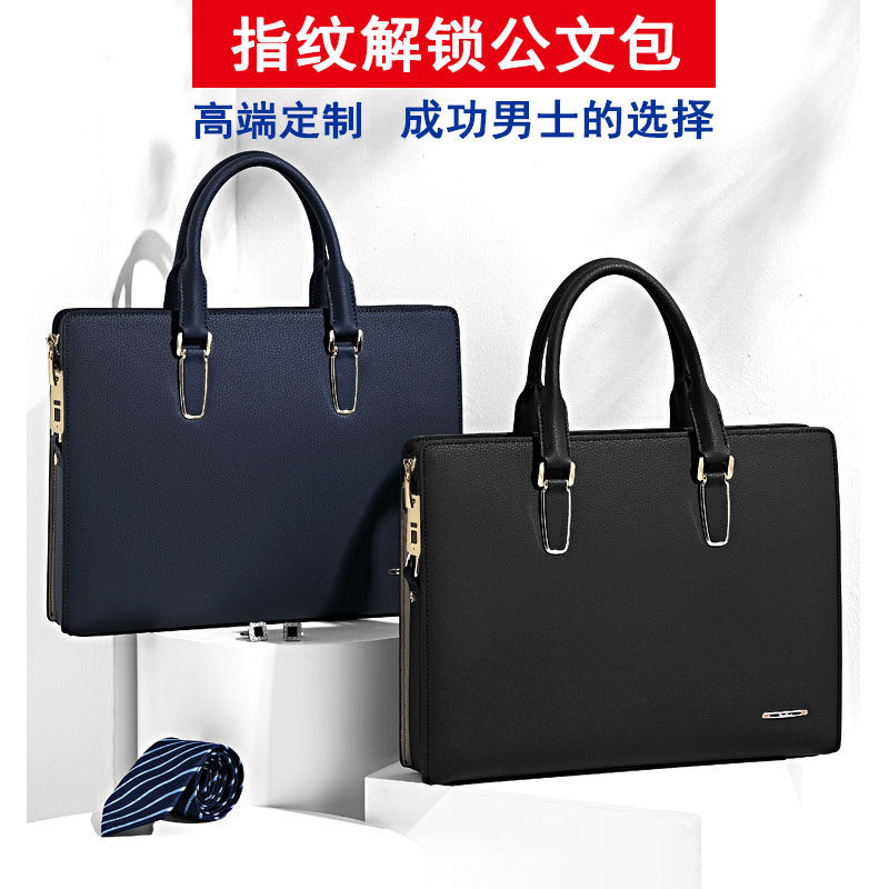Handbag Men's Genuine Leather Advanced Moisture Fingerprint Unlock Briefcase Business Combination Lock Simple One Shoulder Messenger Bag