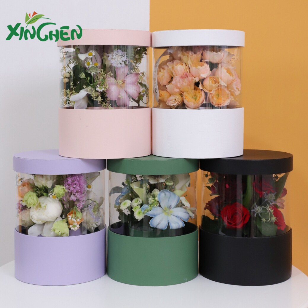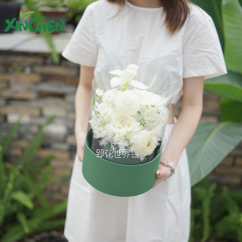 Xinchen materials Tanabata hand basin high and wide pvc round transparent companion gift flower box flower flower arrangement gift box cake box