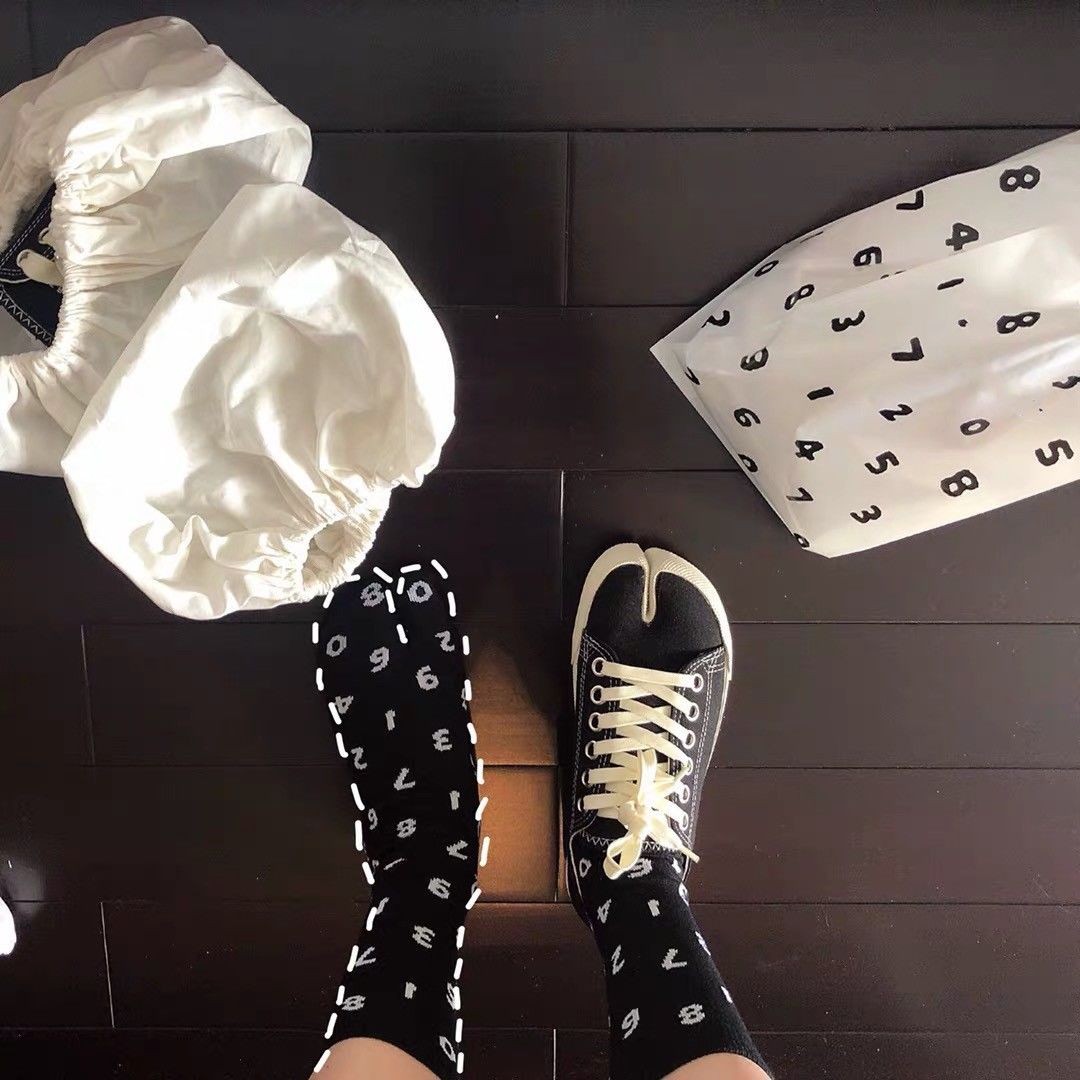 Japanese black digital split-toed socks couple Japanese creative two-toed socks net red all-match men and women in the tube ins tide socks