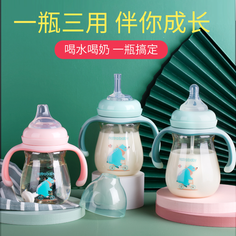 ppsu straw cup drinking milk baby water cup milk bottle big baby learn to drink cup duck mouth cup children's kettle June 1-3 years old