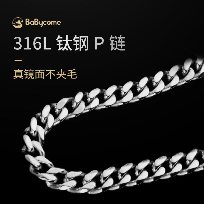 316L titanium steel p-chain (silver) titanium steel explosion-proof punch 316L titanium steel p-chain (gold) titanium steel explosion-proof punch 316L titanium steel p-chain 60cm cowhide traction rope (silver set)