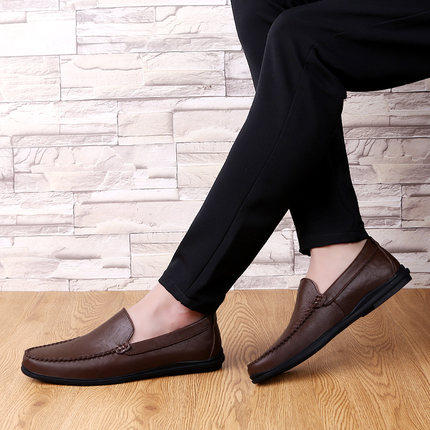 European station Summer men's shoes Han version breathable casual leather shoes genuine leather 100 hitch bean shoes Soft bottom soft leather Lazy Crowd Shoes