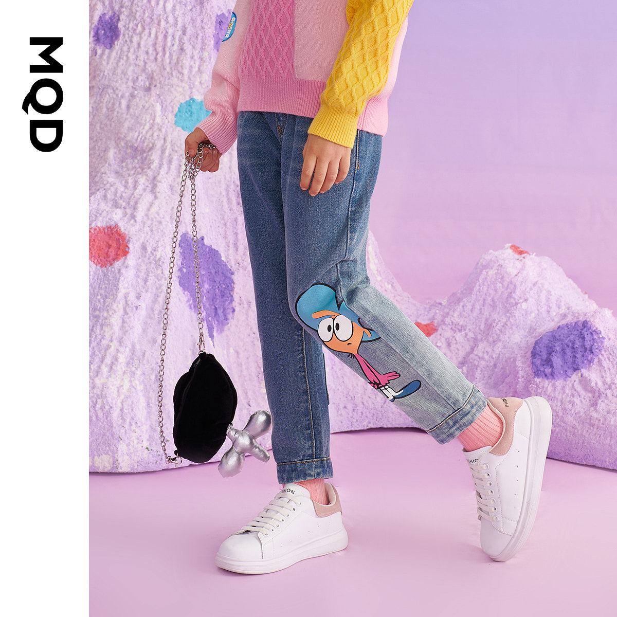 MQD children's clothing autumn girls jeans 2021 New elastic children comfortable tide cool Korean version of casual jeans