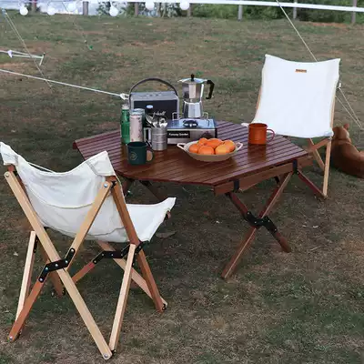 FG outdoor camping portable folding table solid wood picnic barbecue self-driving omelet table camping home dining table