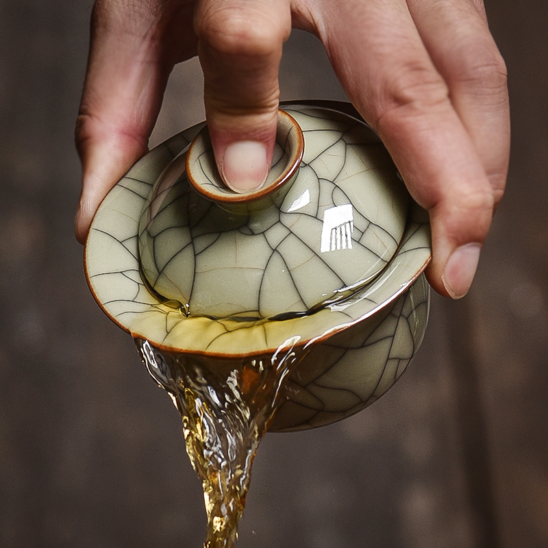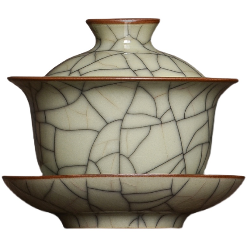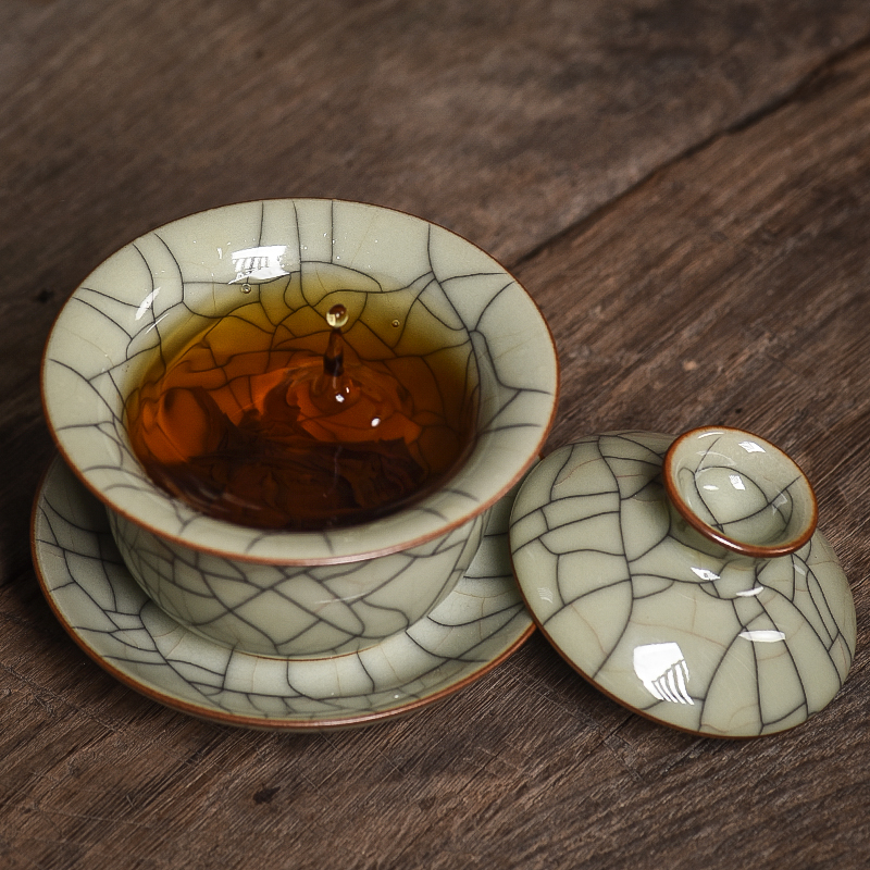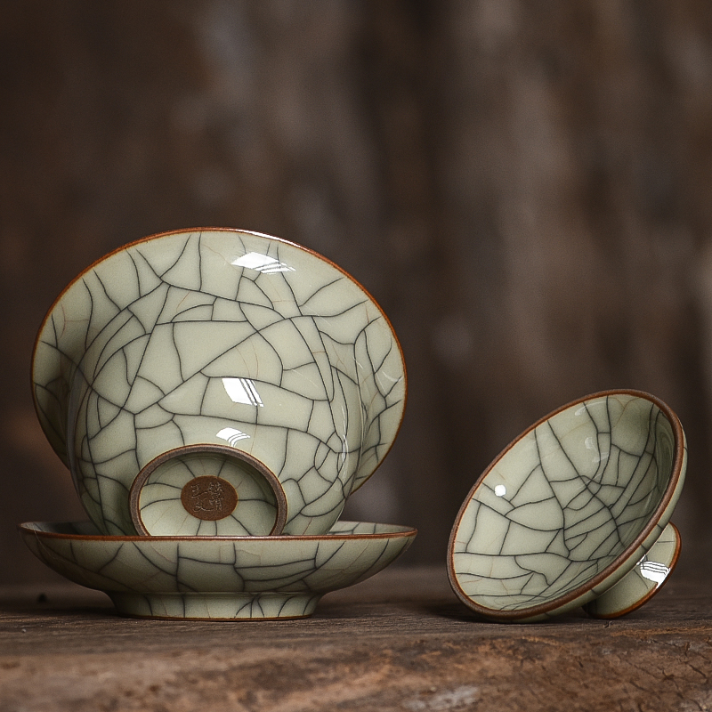 Longquan San Co-covered a cup of cup single ceramic bronze kiln pure hand-made ice crack can foster tea bowl household high end