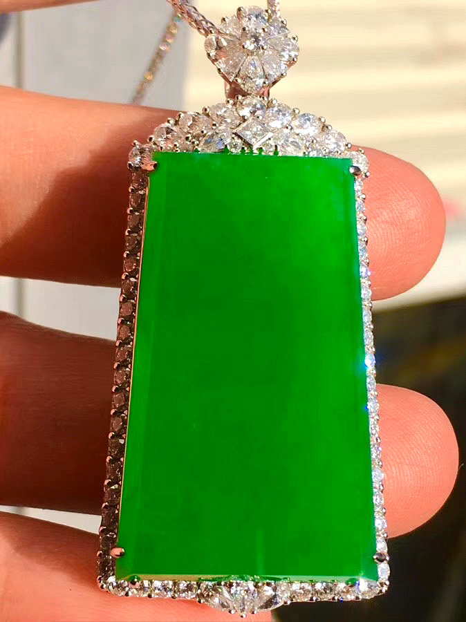Emerald studded Ping An unrauctable pendant ice breeds full of green and green jade pendant male and female with silver inlaid jade pendant