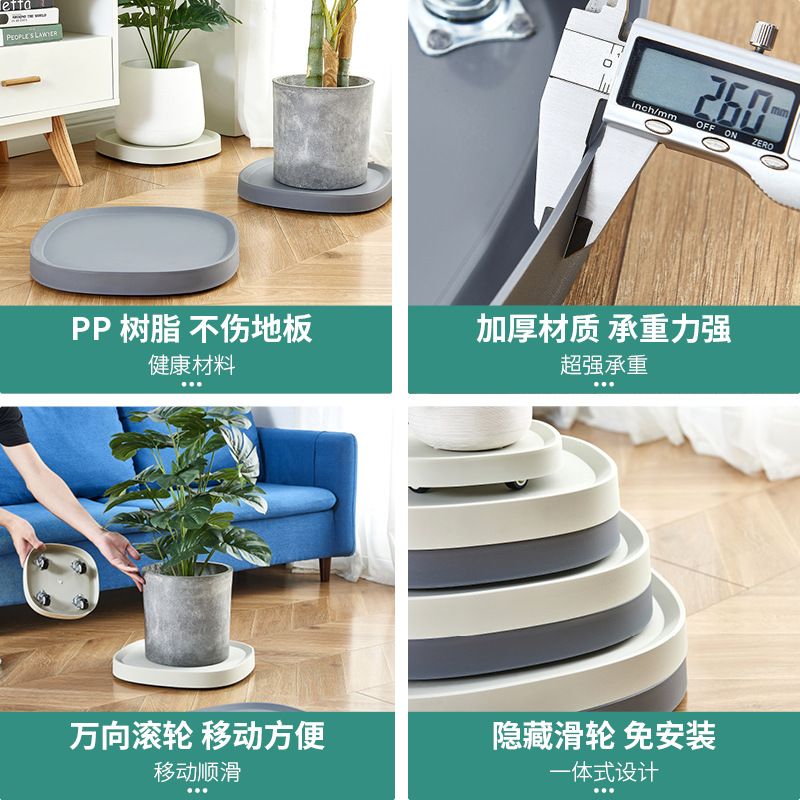 Mobile flower pot tray base with wheel universal wheel flower tray drag roller pulley white plastic hidden invisible wheel