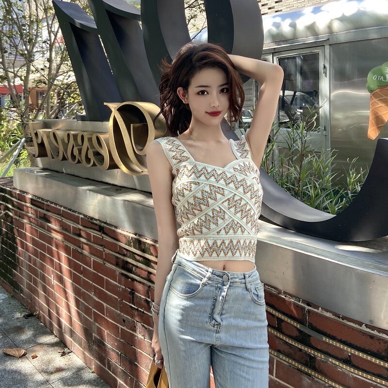 Fresh and age-reducing, personality and fashion, camisole, women's inner stripes, self-cultivation, sexy short outerwear, summer tops