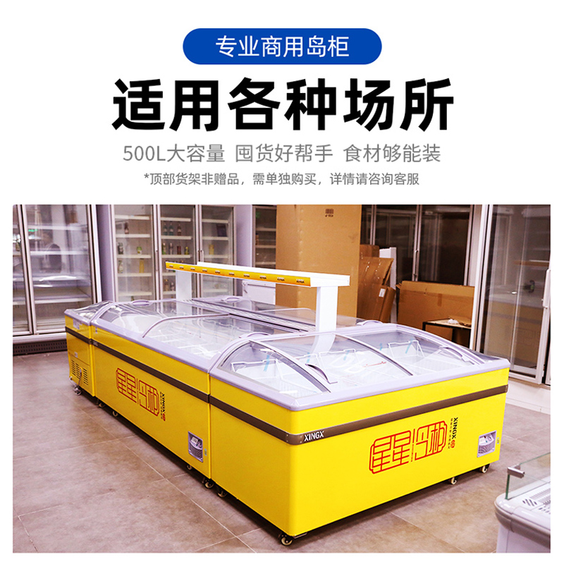 Stars 500 Litres Commercial Frozen Display Cabinet Supermarket Arc Combined Cabinet Glass Door Large Capacity Frozen Island Cabinet