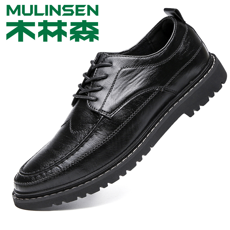 Wood Linson Men's Shoes Break Code Clear Cabin Fall Bean Shoes Breathable Dad Shoes Business Positive Clothing Casual Leather Shoes Man Genuine Leather-Taobao