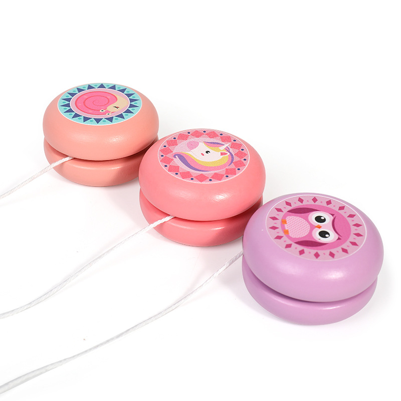 Cute woody yo-yo children cartoon Animals roundabout with Fried Balls Kindergarten Puzzle Classic Nostalgia Toys