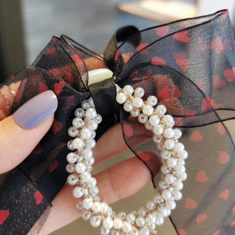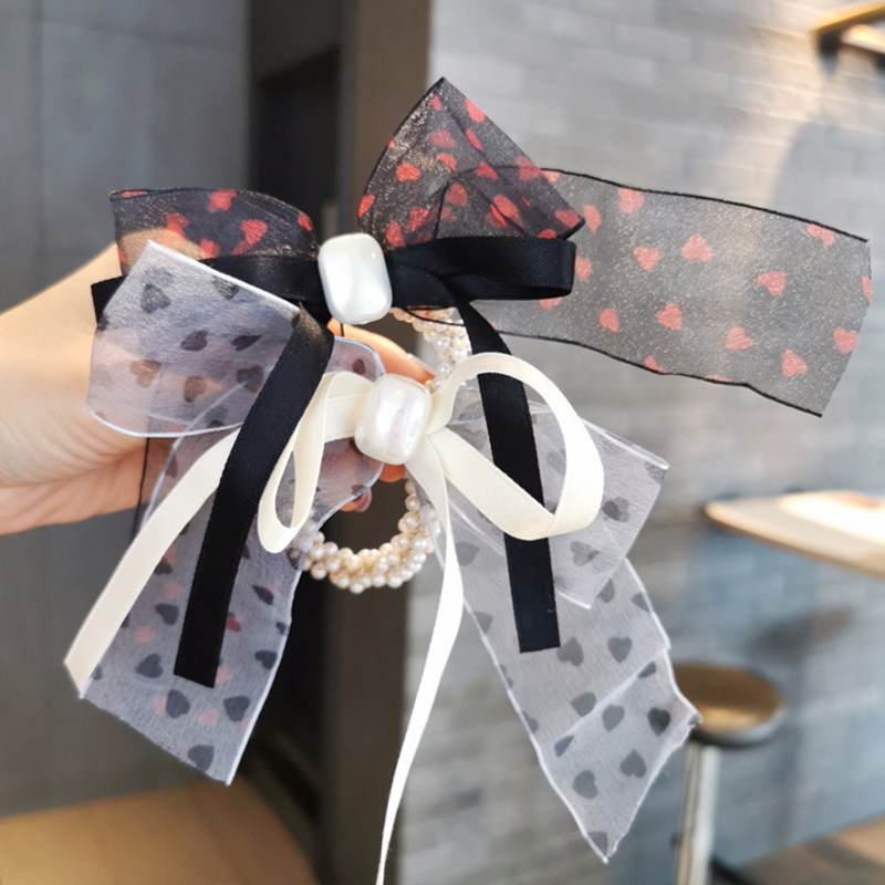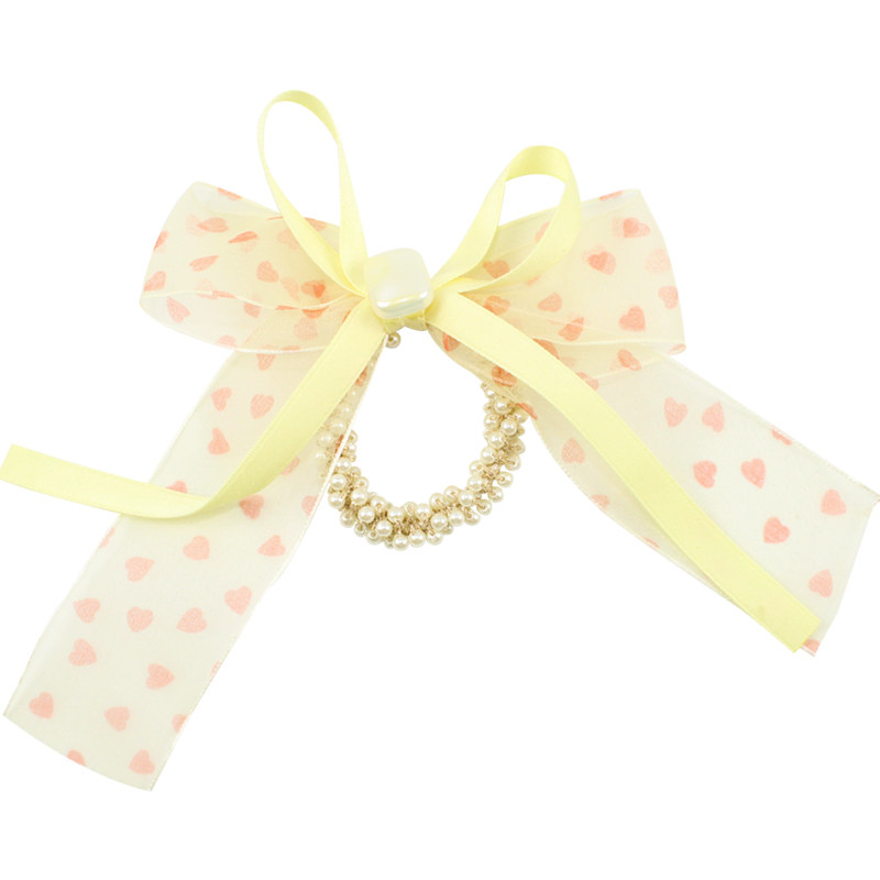 Pink Ribbon Pearl Hair RingBlack Ribbon Pearl Hair RingGray Ribbon Pearl Hair RingLight Yellow Ribbon Pearl Hair Ring
