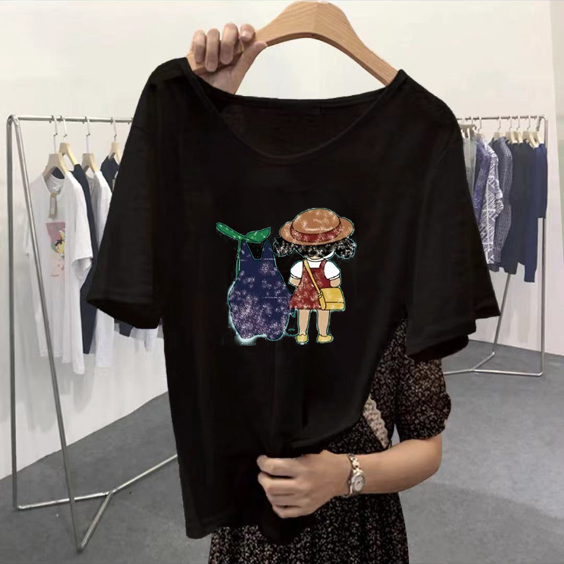 Brand Women's Clothing Special Cabinet Withdrawal Cabinet Clear Cabin 2021 Summer Easy large version Bamboo Festival cotton T-shirt female short sleeve printed blouse