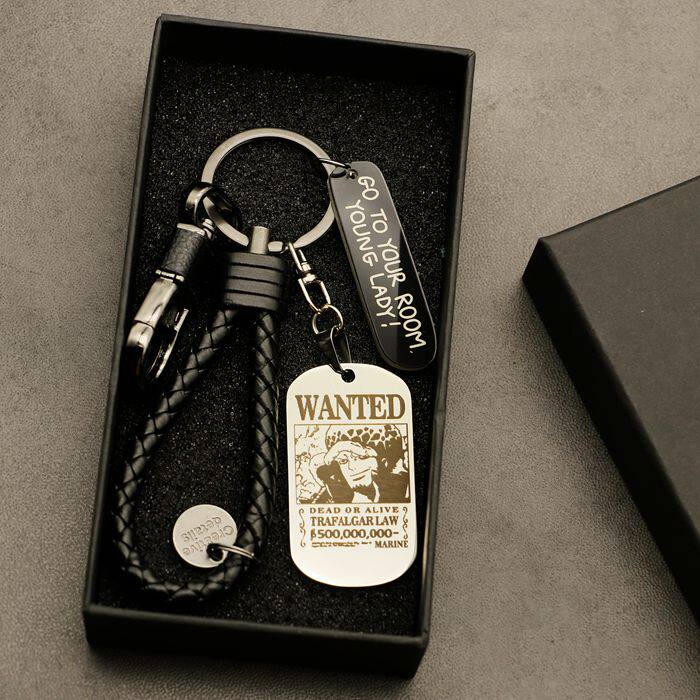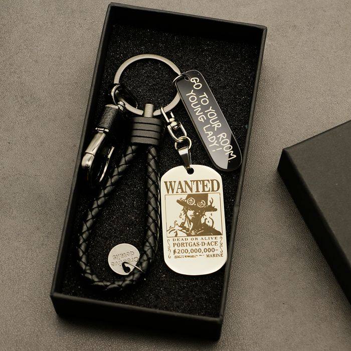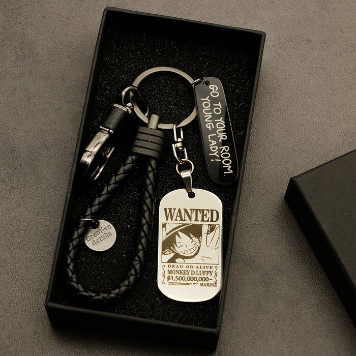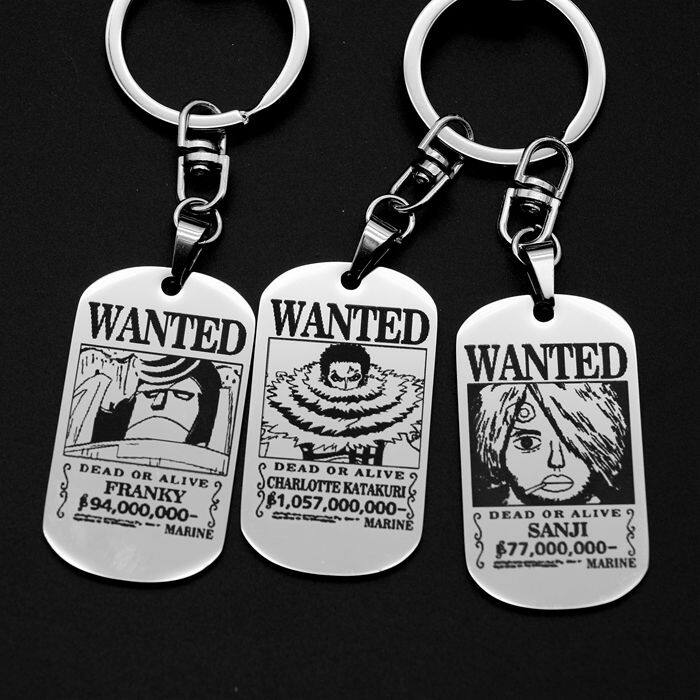 One Piece around Luffy Solon Ace Bounty Wanted Titanium Steel Military Plate Keychain Pendant Men's and Women's Car Keys