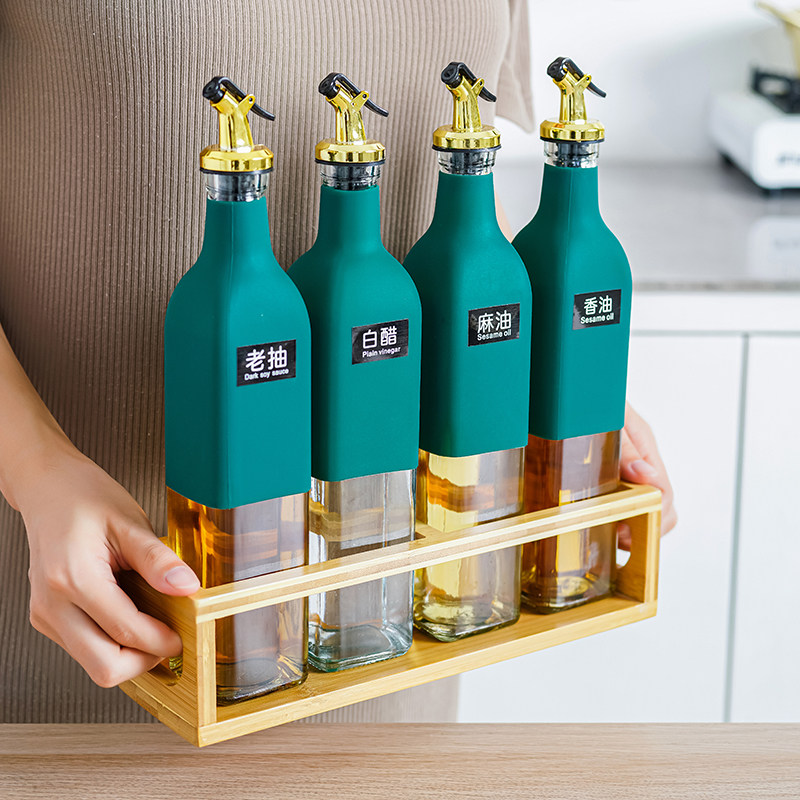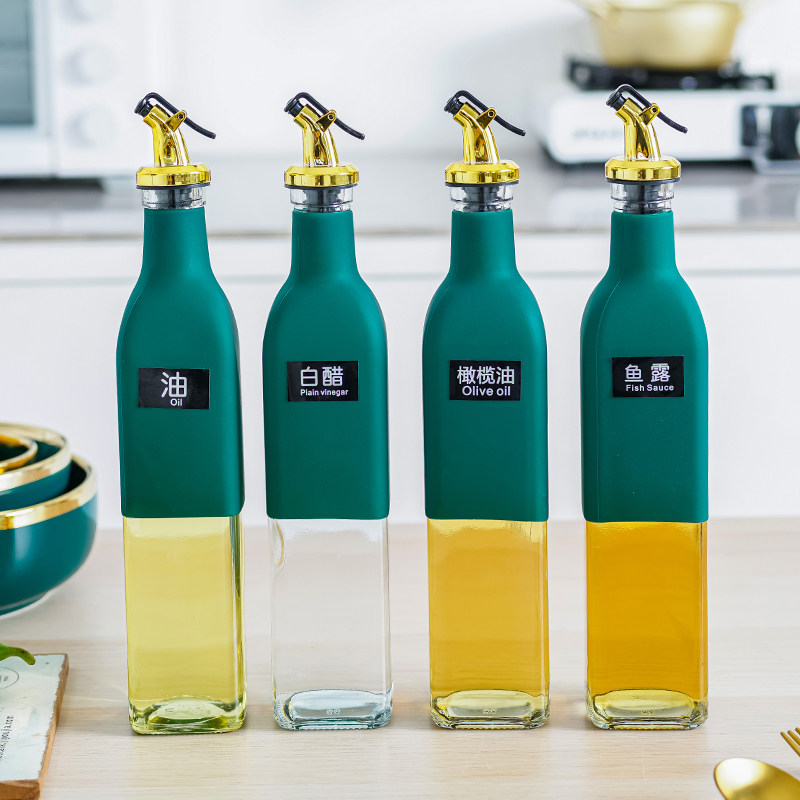 Glass oil pot home kitchen large lyo vinegar jar soy sauce cooking wine aroma leak proof anti slip Nordic seasoning bottle oil bottle set