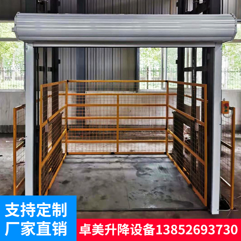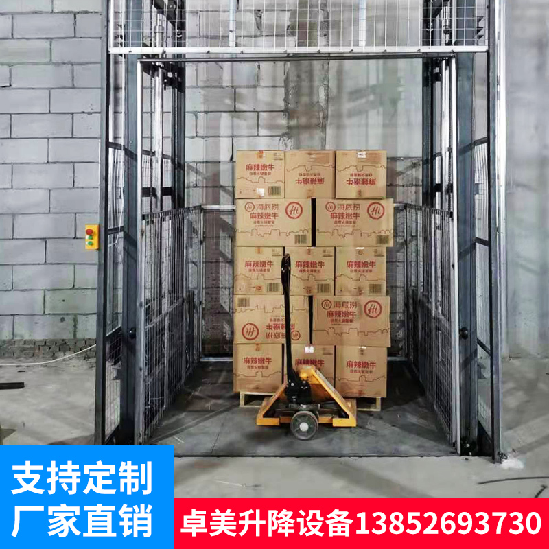 Cargo-ladder lift anti-fall simple rail-type plant lifter warehouse goods hydraulic electric lifting platform
