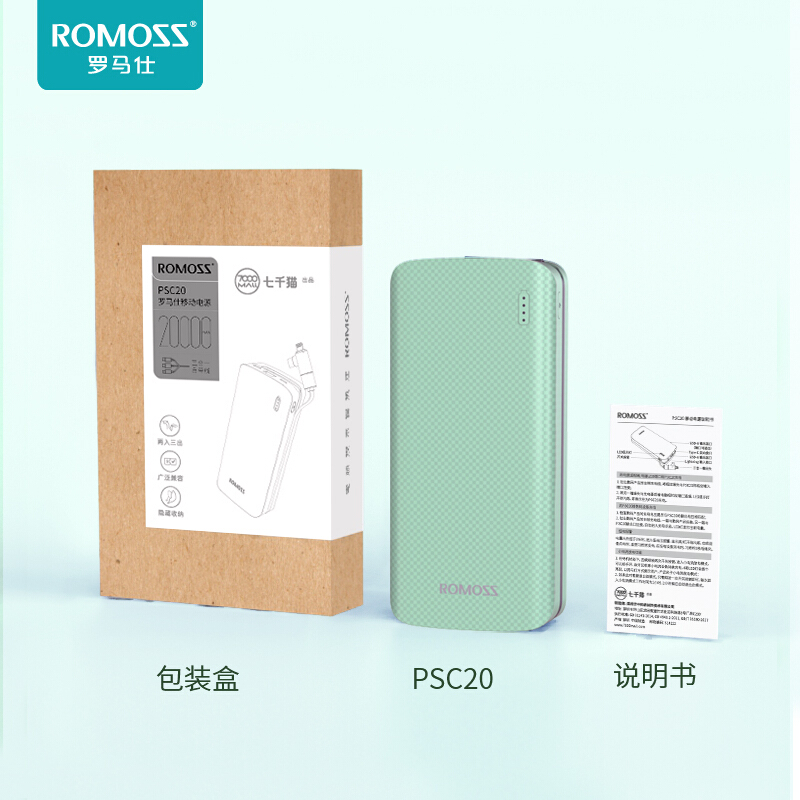 Roman Shi PSC20 charging treasure 20000 mAh comes with a detachable three-in-one plug mobile power supply