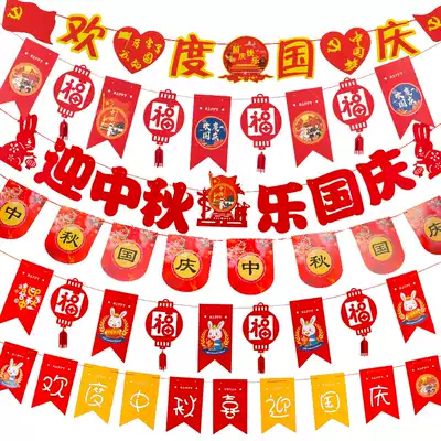 Fangqi-Mid-Autumn Festival Rabbit Fangqi-Celebrate National Day B- Pull Flag-Welcome to the Mid-Autumn Festival National Day Pull Banner-Mid-Autumn Festival National Day Pull Banner-Mid-Autumn Festival Half Circle