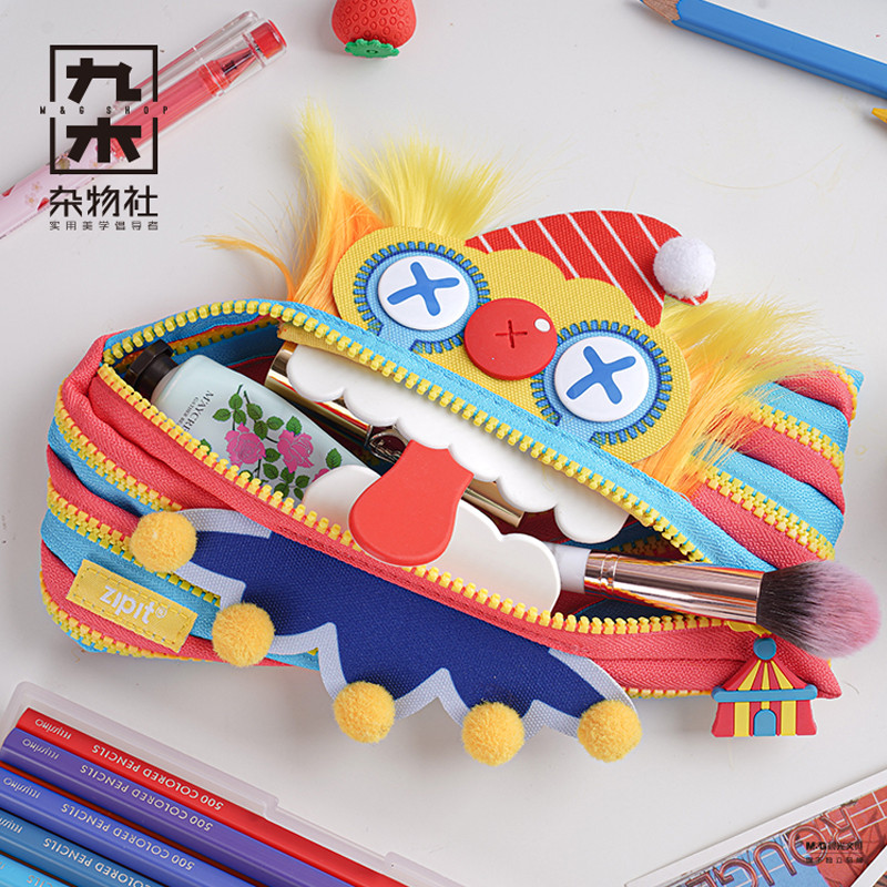 ZIPIT Nine Wood Debris Social Brand United Line Down The Same Clown 2021 Bestselling Monster Pull Chain Pen Bag Creative Personality Children Large Capacity Schoolboy Stationery Splicing PVC Lead Pencil Case